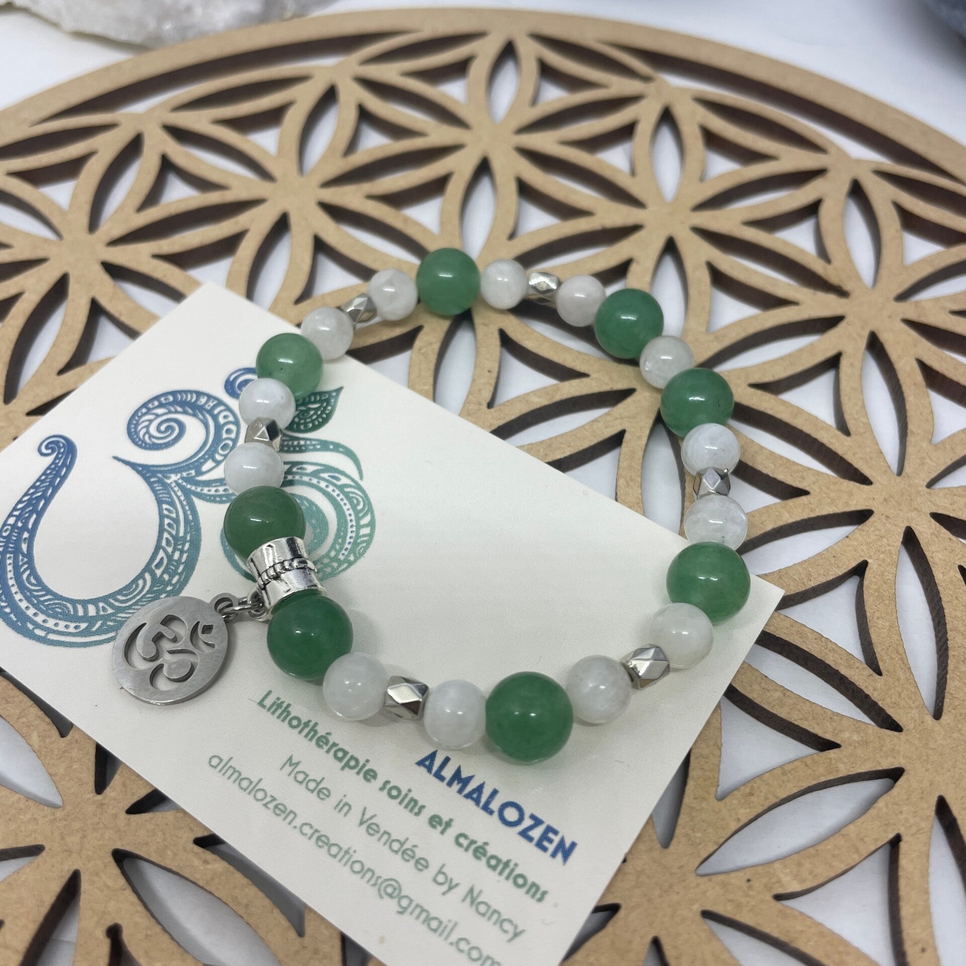 Bracelet en Aventurine et Pierre de Lune.