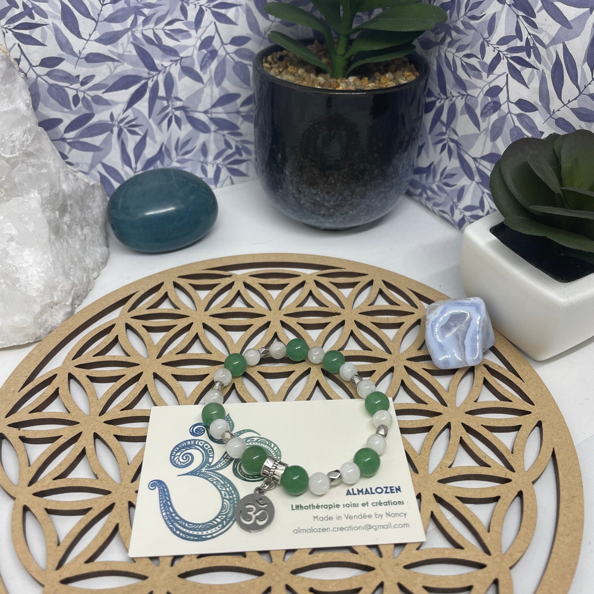 Ce bracelet est anti-stress, il apporte tranquillité intérieure, purifie le corps mental, émotionnel et éthérique. Il favorise le calme, la sérénité et le lâcher prise. Il redonne humour et gaieté.