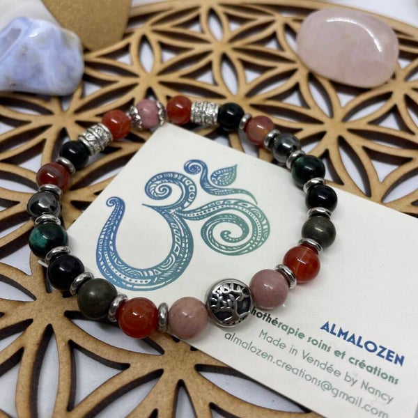 Réalisé sur fil doublé, avec perle de fermeture en acier inoxydable "arbre de vie".