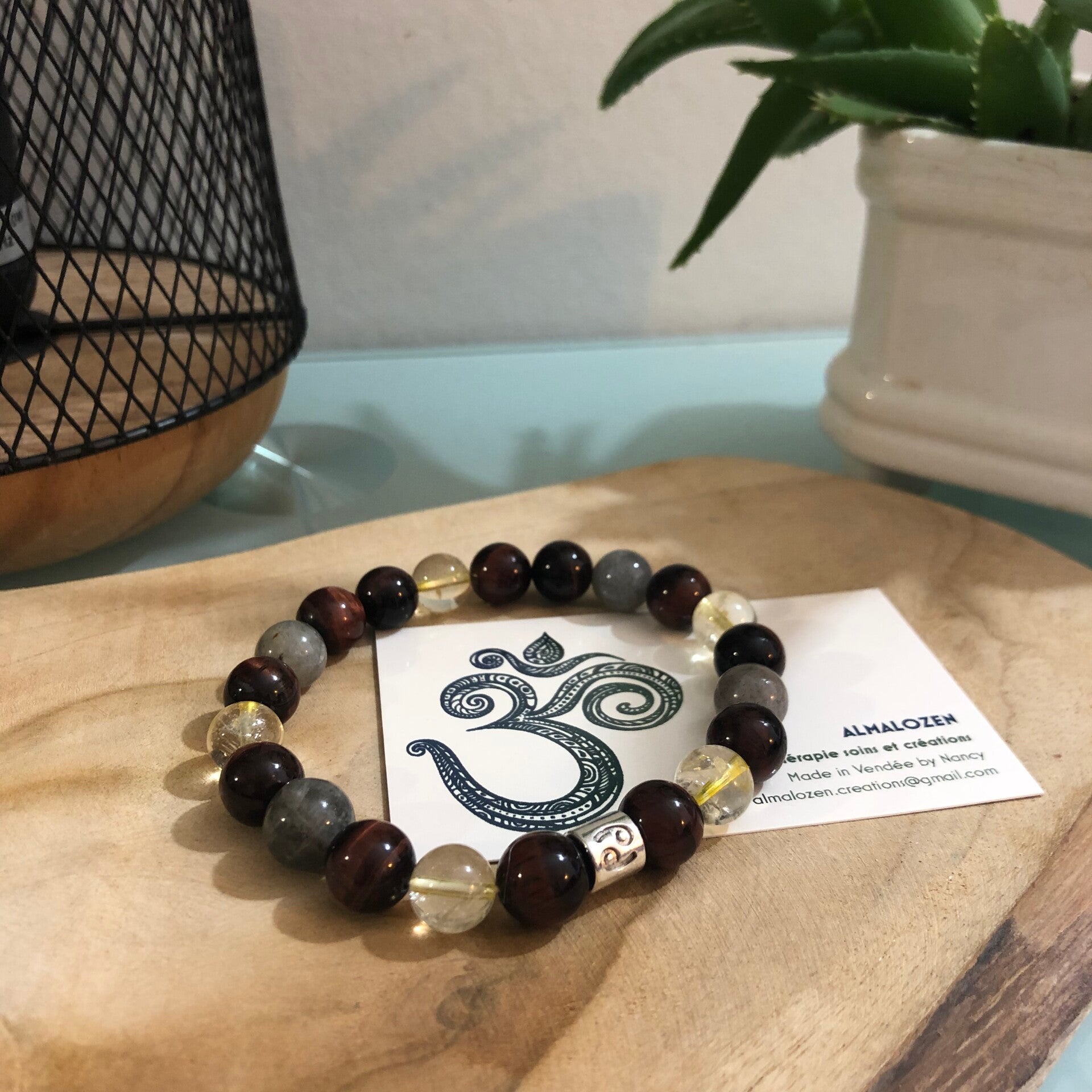 Bracelet en Labradorite, Oeil de taureau et Citrine.