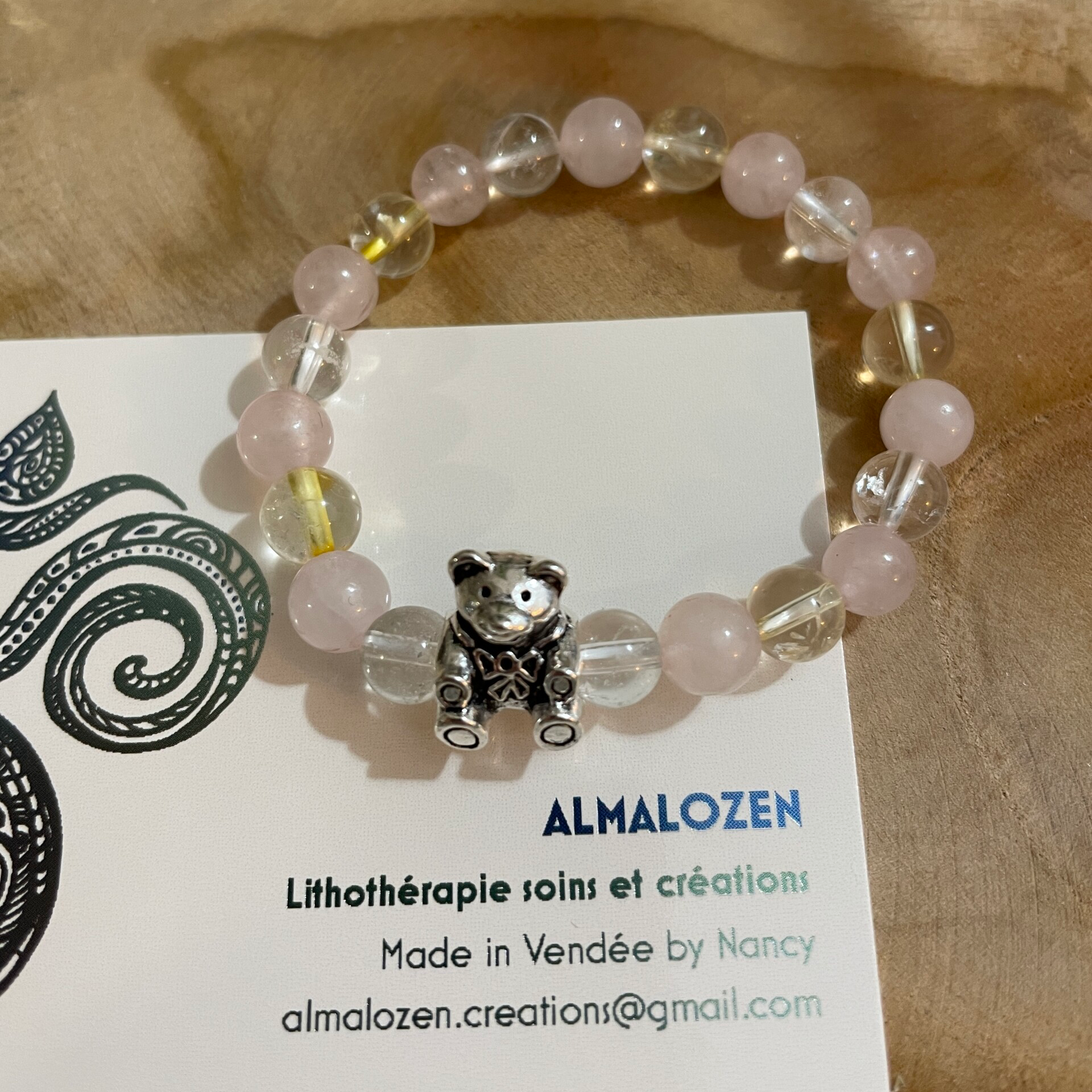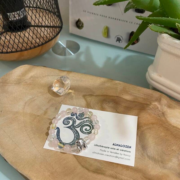 Bracelet en Cristal de roche, Quartz rose et Citrine.